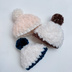 ▶︎頭囲18.5センチの弊宅モデヌぬいちゃん(フクヤヒプぬいちゃん)の頭をガイドに作成した手編みのニット帽です